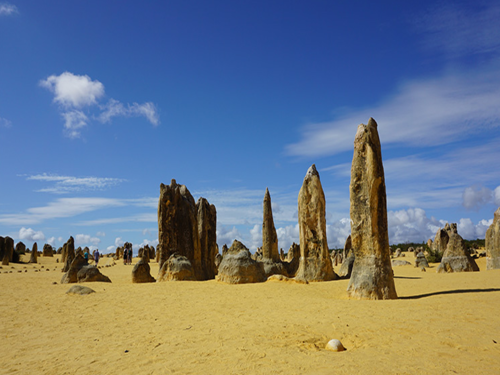 尖峰石阵位于南邦国家公园内,数千座石柱矗立在金黄色的沙漠之中,从神奇的天然沙漠之上拔地而起,感叹大自然的鬼斧神工。尖峰石阵的石灰岩由贝壳演变而成。在澳洲金色阳光的照耀下,尖峰石阵会散发出古老而神秘的光泽,引得来自世界各地的游客们纷纷举起手中的相机记录下这一奇妙的景观。