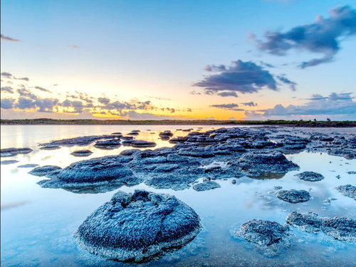 西蒂斯湖是一个安静的咸水湖,湖水的咸度是海水的两倍。从塞万提斯通向湖的道路是没有休整过的土路,但湖周围是精心修整过的,有步行道环湖一周,无需门票,可以沿湖兜一圈,大概也就需要30分钟左右。波光粼粼的湖面,安静驻足的鸟类,而最大的特色就是湖边半球状的石窟(Stromatolites),这是一种有着上亿年历史的古老菌类,在高盐分的湖中,不断被结晶,形成的“石头”,游客需要注意不要去触摸它们,这些是还活着的生物,是受到保护的。
